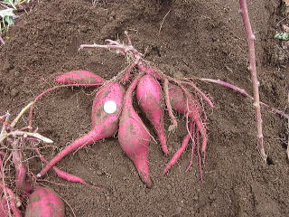 下の写真で紹介させていただきましたが、さつまいもは株を掘ってみないと、大きさや本数はわかりませんので、さつまいもの大きさ等につきましては、ご理解を賜りたくお願い申し上げます。