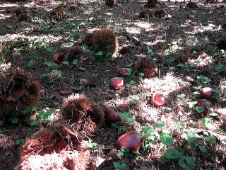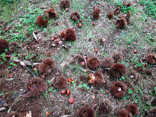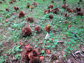 栗は1本の木で、2〜3週間かけて栗が熟して落ちます。